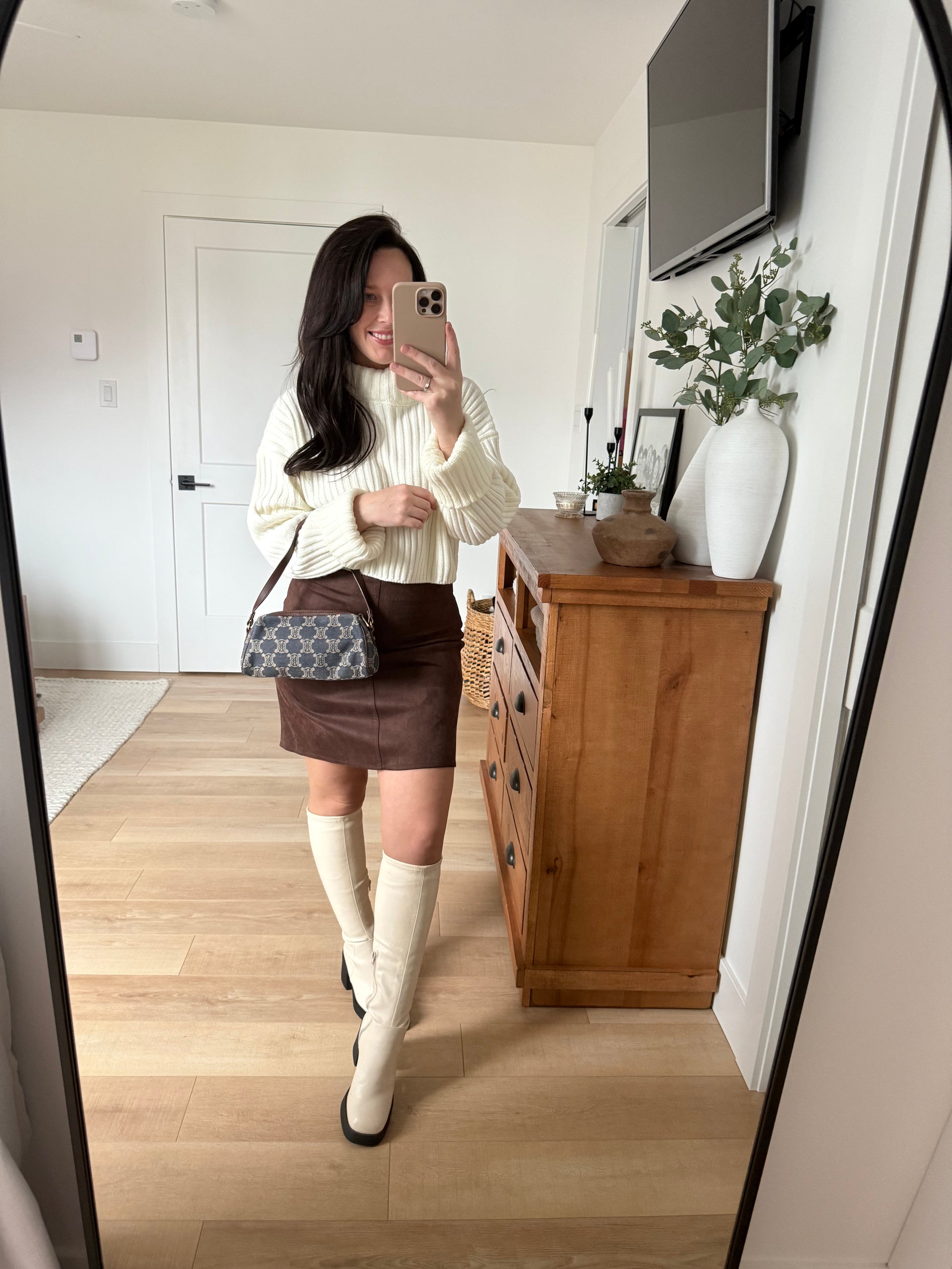 - Leather top handle and trim