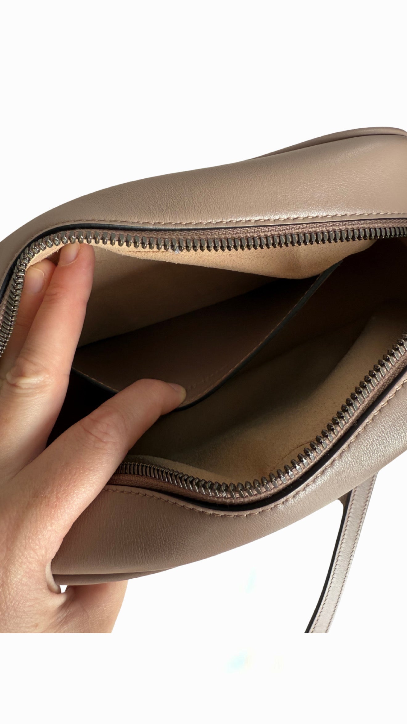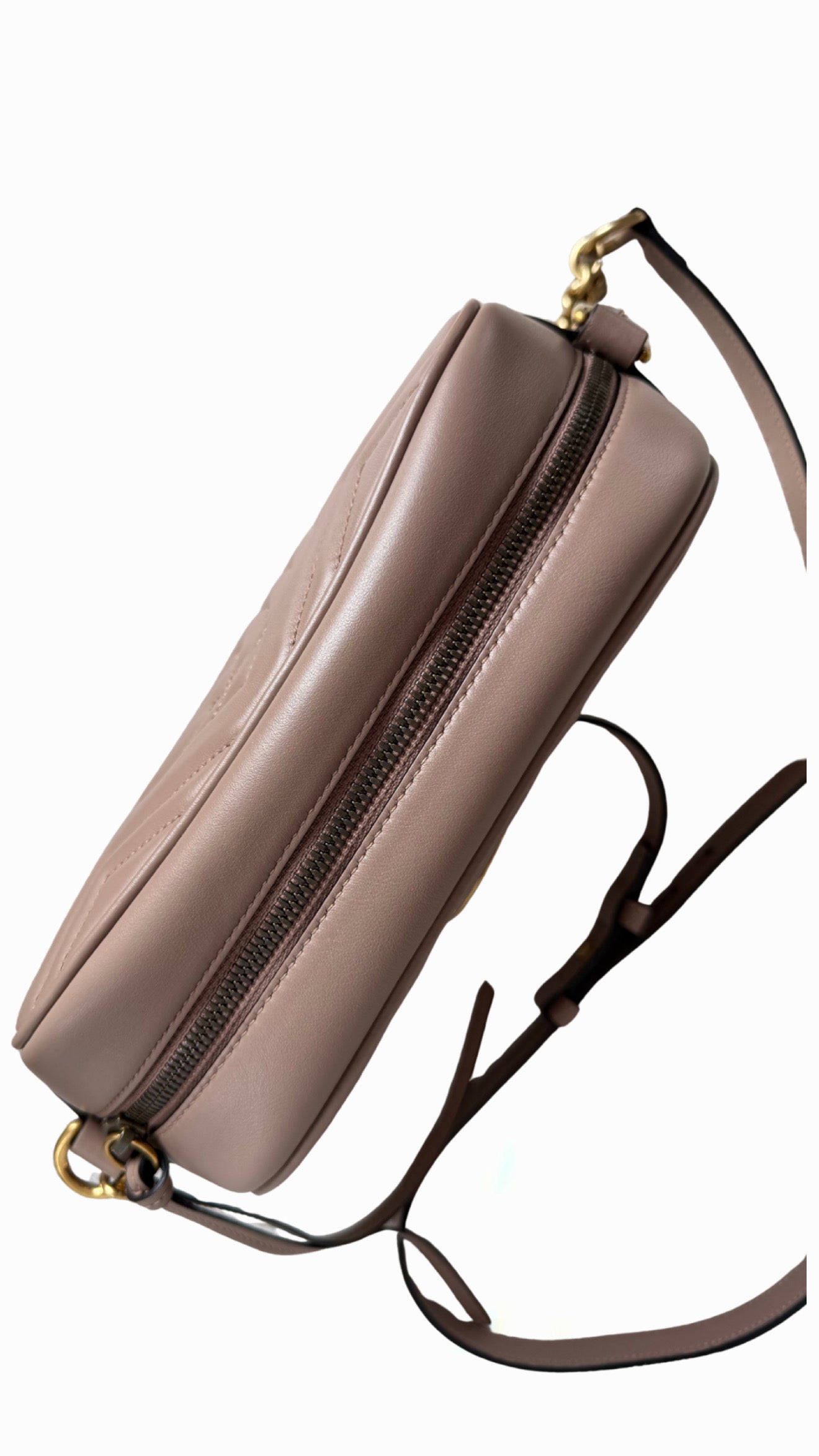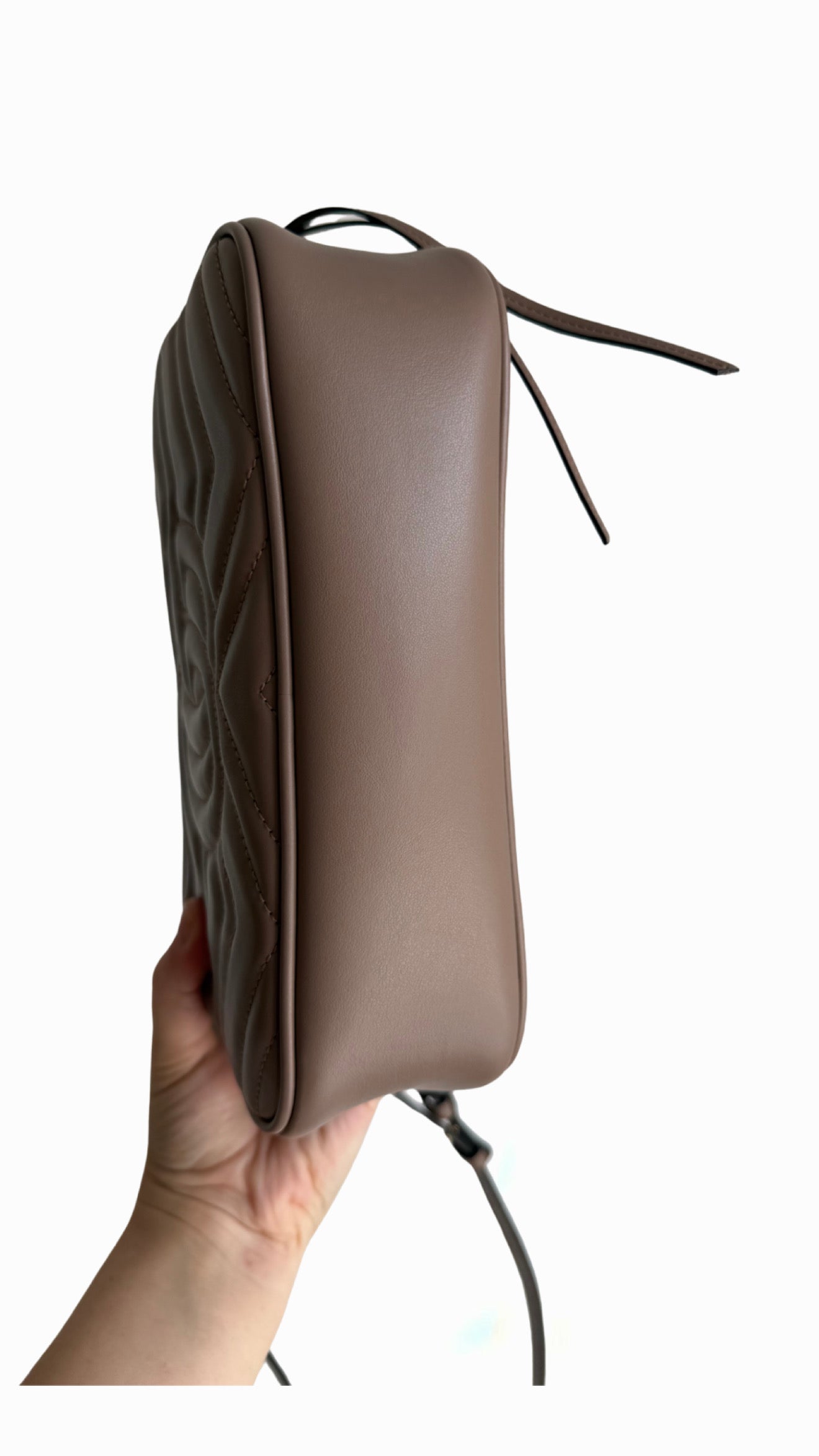 - Exterior Tan/dusty pinkish matelasse chevron leather