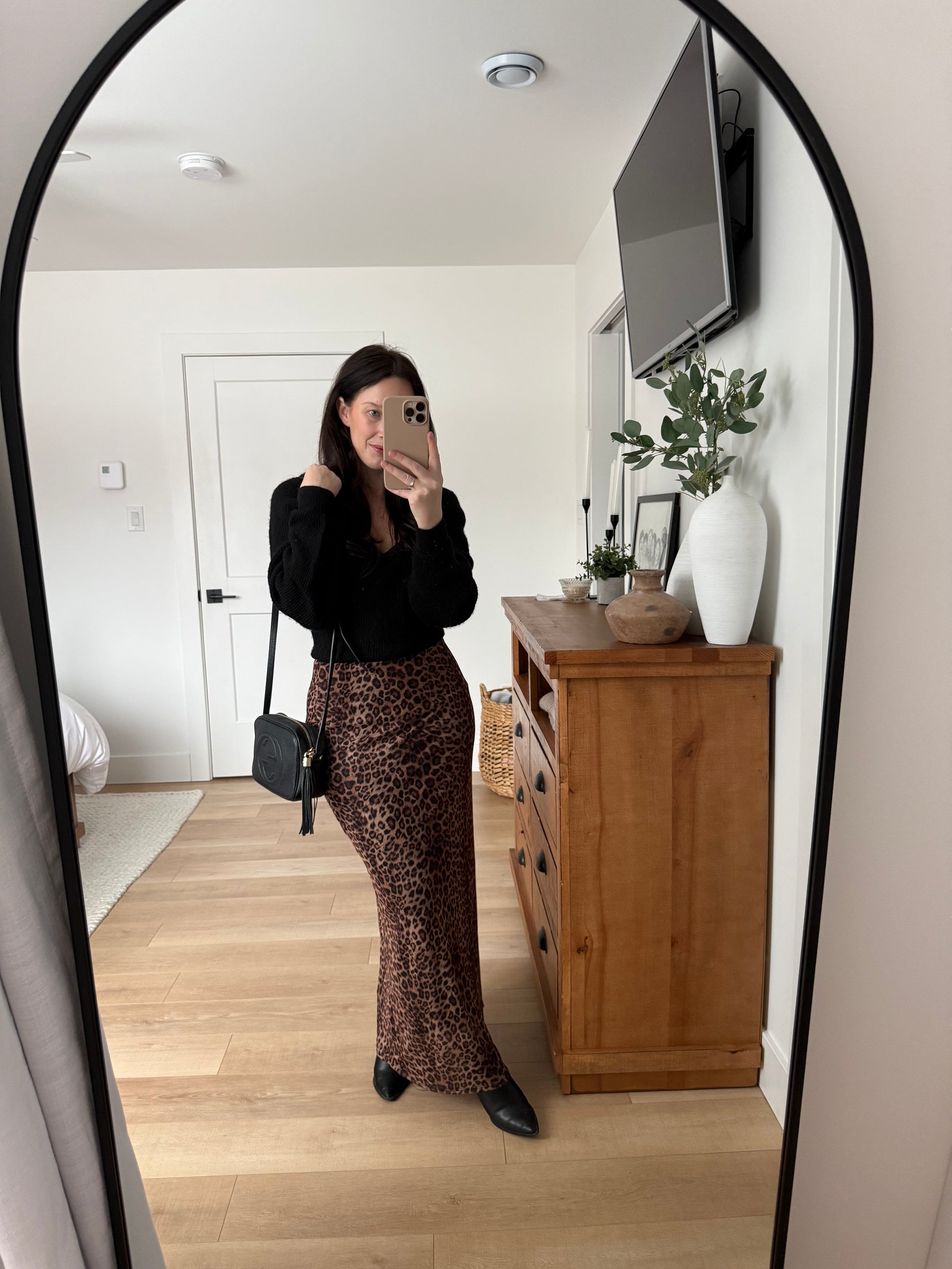 - Gold tone hardware