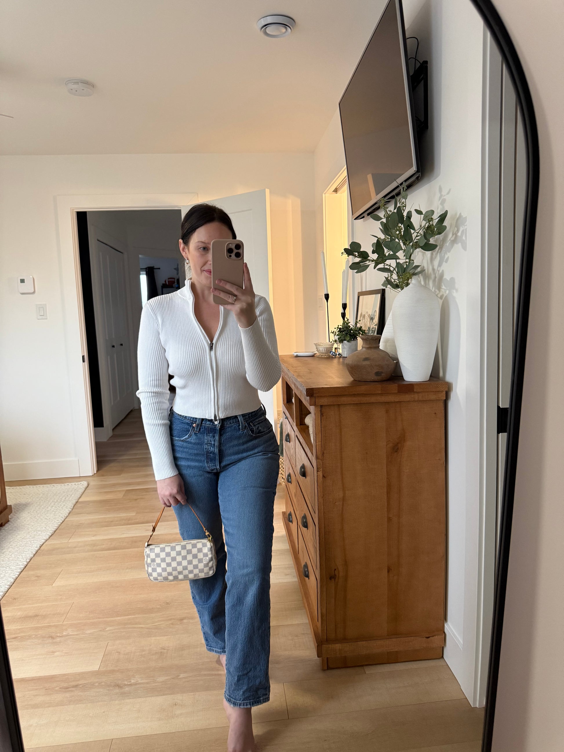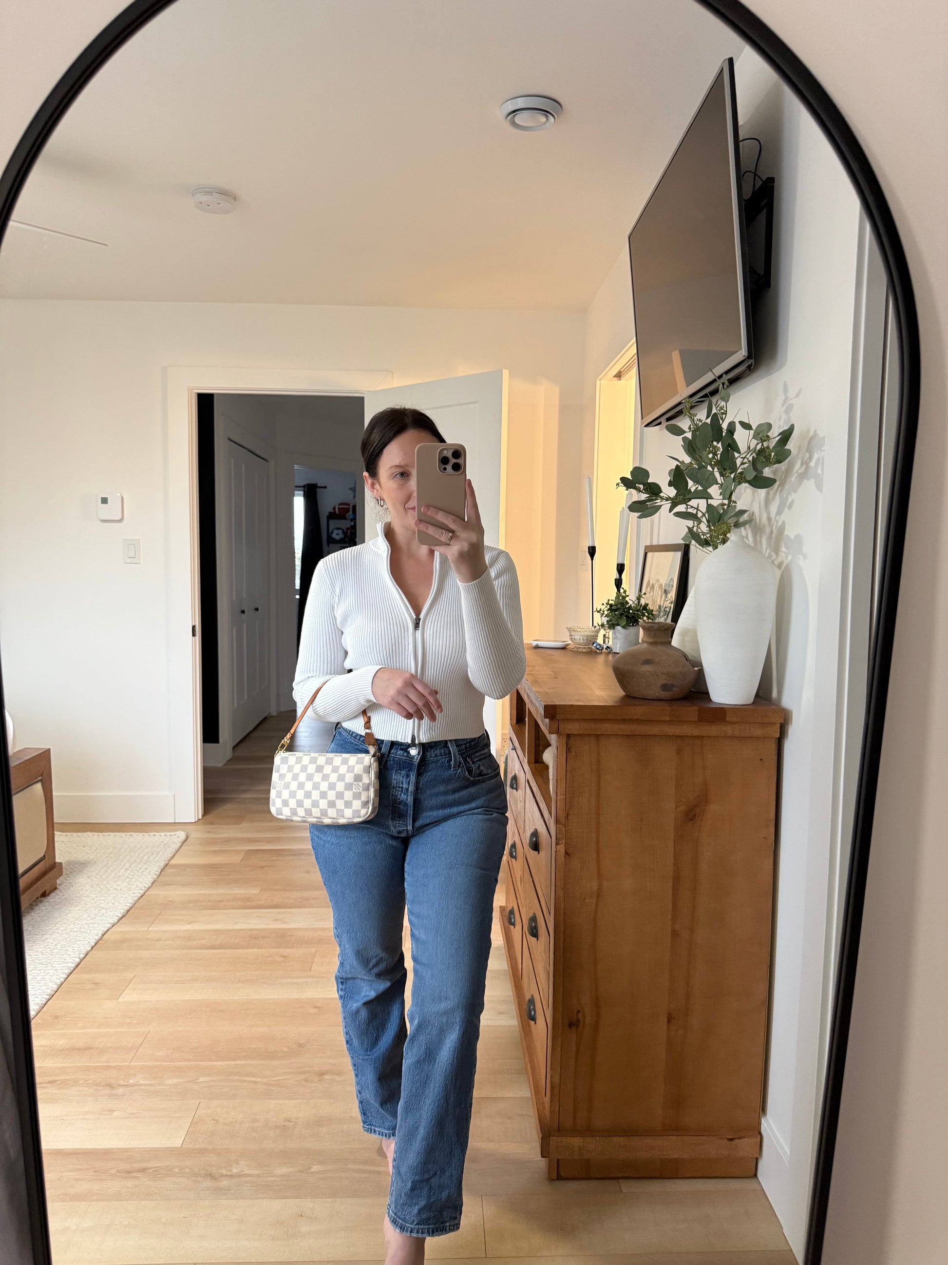 - Gold toned hardware